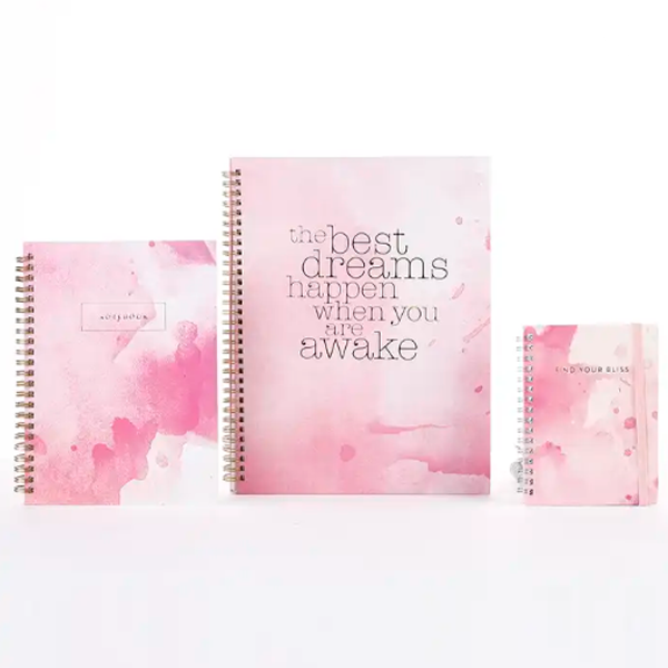 High quality girls favor pink spiral exercise notebook with custom printing service