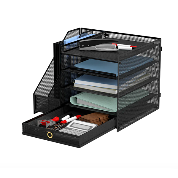 High Quality Office Supplies 7 Compartments Black Metal Mesh Desk A4 Paper Files Organizer for Home