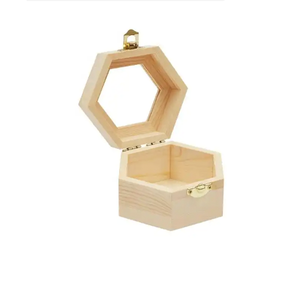 HIGH QUALITY Unfinished Hexagon Wood Box with Window and French Buckle handmade DIY wooden gift box