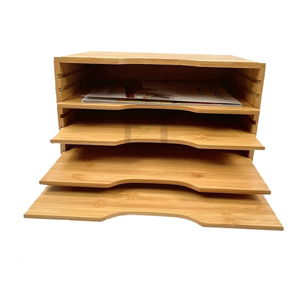 Homex/BSCI Natural Bamboo File Organizer Paper Sorter with 5 Adjustable Shelves