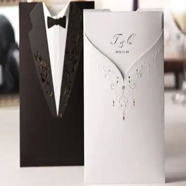Hot sell custom luxury fashion design embossing wedding dress &formal high end wedding envelopes for invitation card
