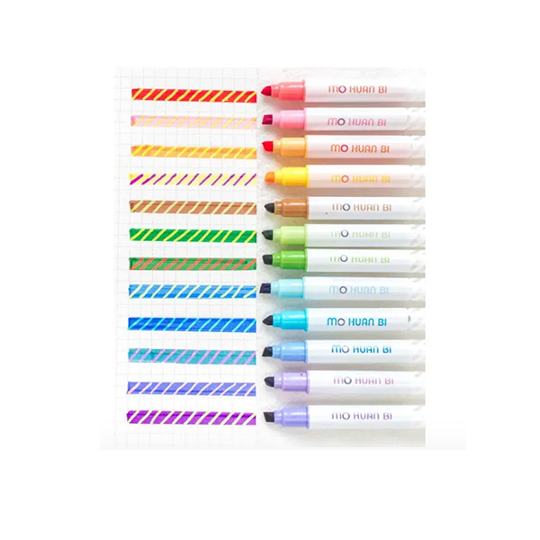 Hot Selling 12 Magic colors highlighter pen set Dual-side fluorescent erasable marker Liner drawing art pe