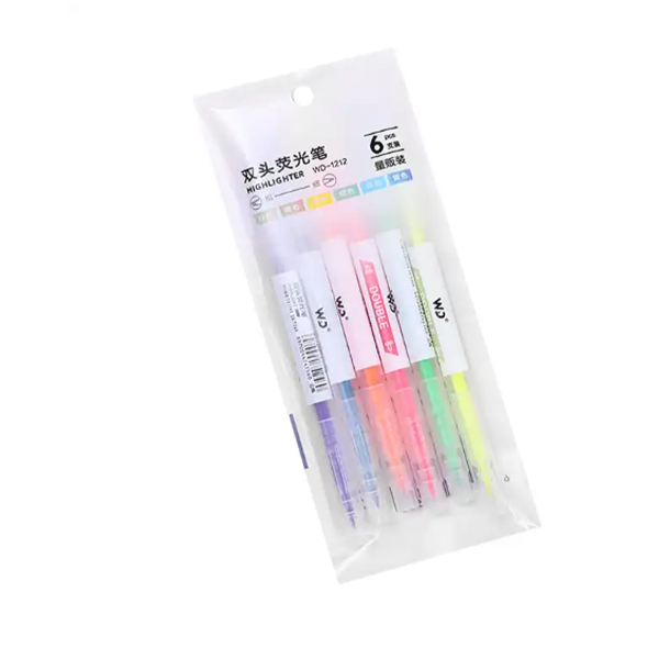 Korean creative double-headed two-color highlighter pens 6 packs, students draw key sentence markers, color diagonal marker pens
