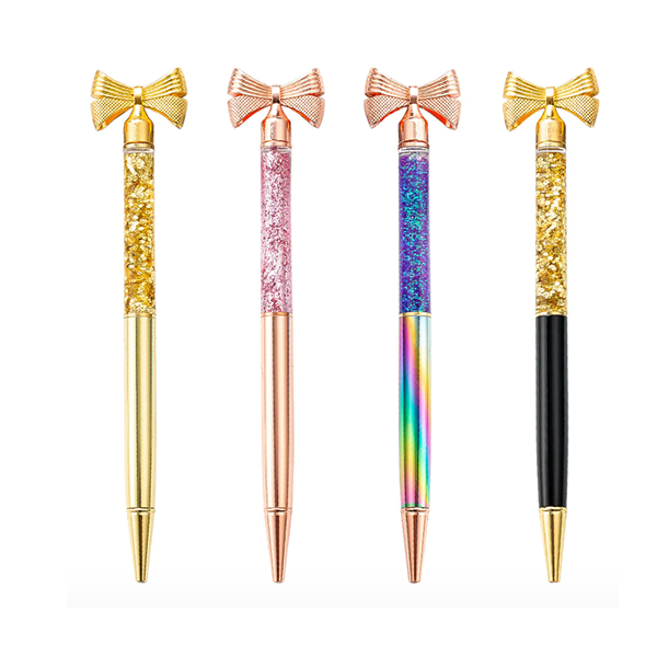 Metallic Bling Bling Bow Tie Ballpoint Pens for Girls Gift Ball Pen Office School Stationery 4 Pcs with Black Ink