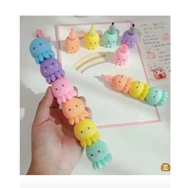 mini highlighter small octopus highlighter set cut stationery for school fluorescence pen set