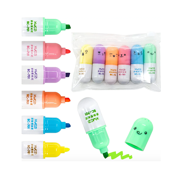 Mini Pill Shaped Highlighter Pens for Writing Cute Face Graffiti Marker Pen Korean Stationery School