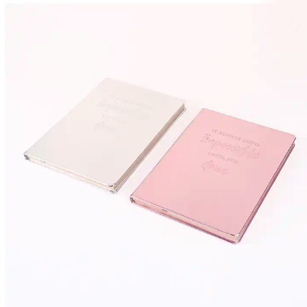 Minimalist style embossed mirror PU hardcover notebook with silk bookmark