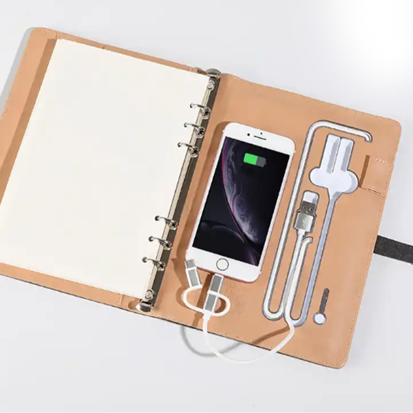 Multi-function wireless Notebook With Power Bank, customize logo Power Bank Diary