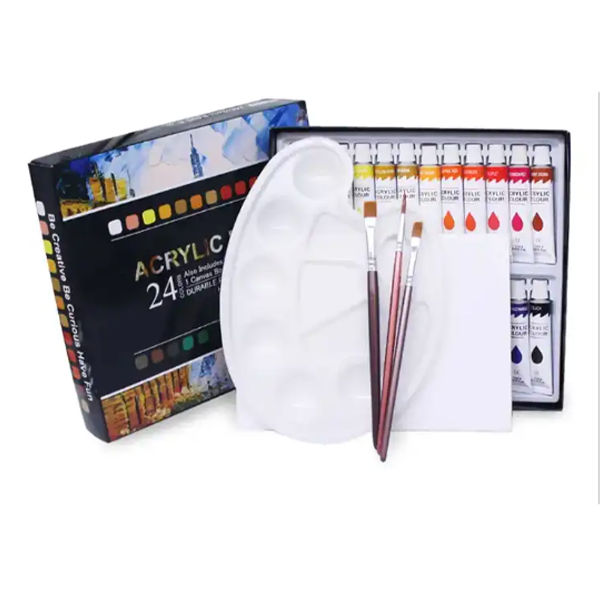 New Arrival children’s painting set 24 colors 12ml acrylic paint white palette canvas wholesale art supplier