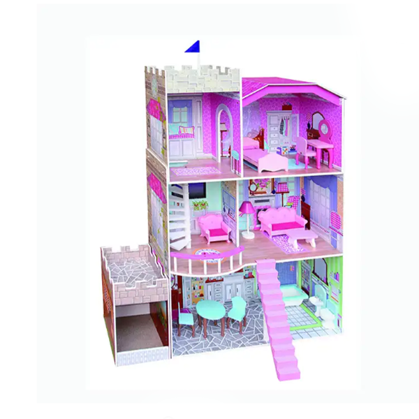 New arrival Triple Floors Wooden Pink Doll dream House With Mini Furniture Accessories Customized