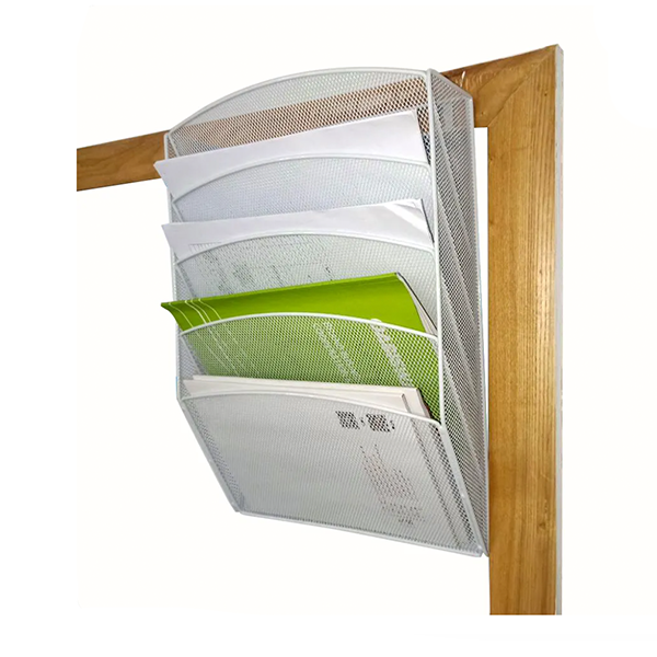 office stationer 5 hanging maganizer rack white metal mesh wall mounted document and file organizer for A4 letter folders