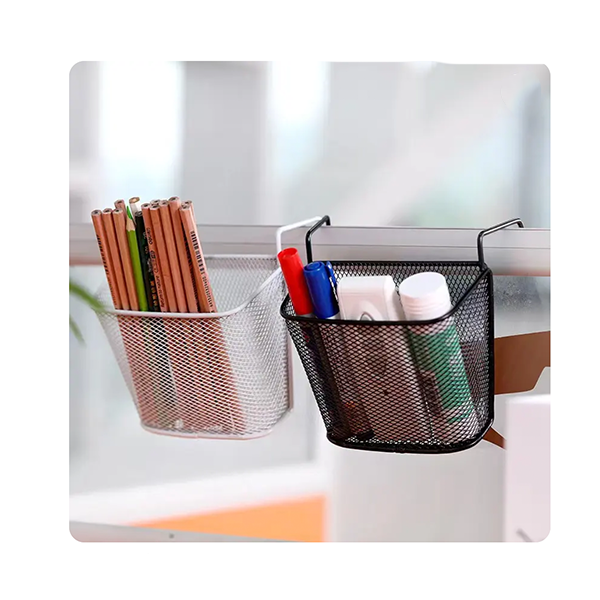 Office Supplies Desktop Black Silver Metal Wire Mesh Hanging Pencil Holder for School Office