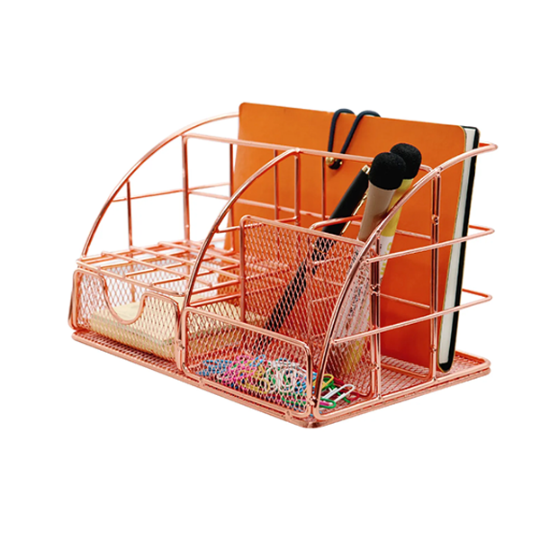 Office Wire Rose Gold Desk Organizer, Multi Desktop Desk Drawer Organizer,Metal Mesh Desk Organizer with Sliding Drawer