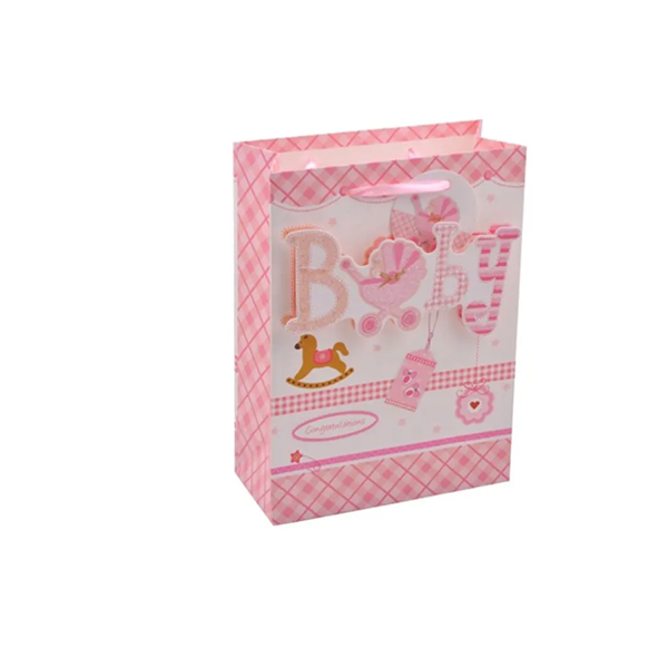 Paper Gift Bags With Satin Ribbon 3d Baby Care Pink luxury gift bags