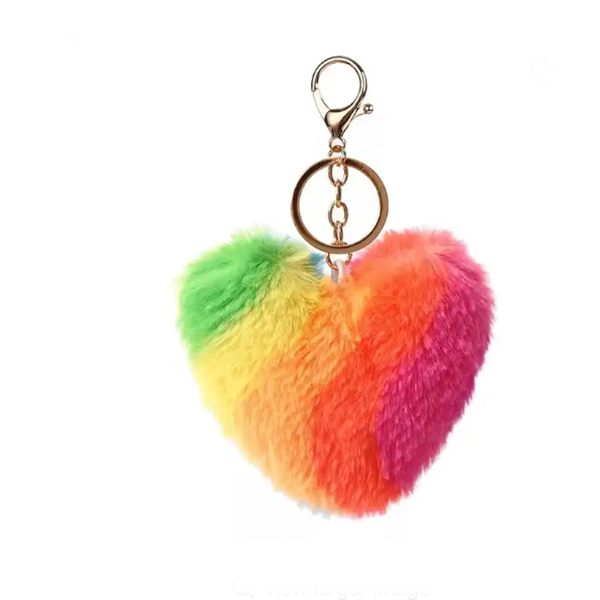 Pretty promo gifts fashion pink festival souvenir puff fake real initial heart pompom set bulk fur ball pom pom keychain