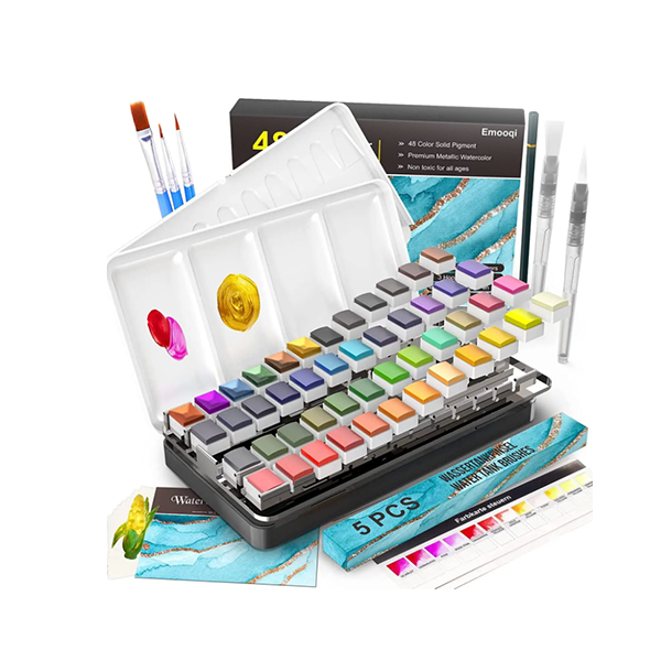Professional 36 Colors Solid Watercolor Paint Set Portable Basic Neone Glitter Watercolor Paint for Drawing Art Paint Supplies