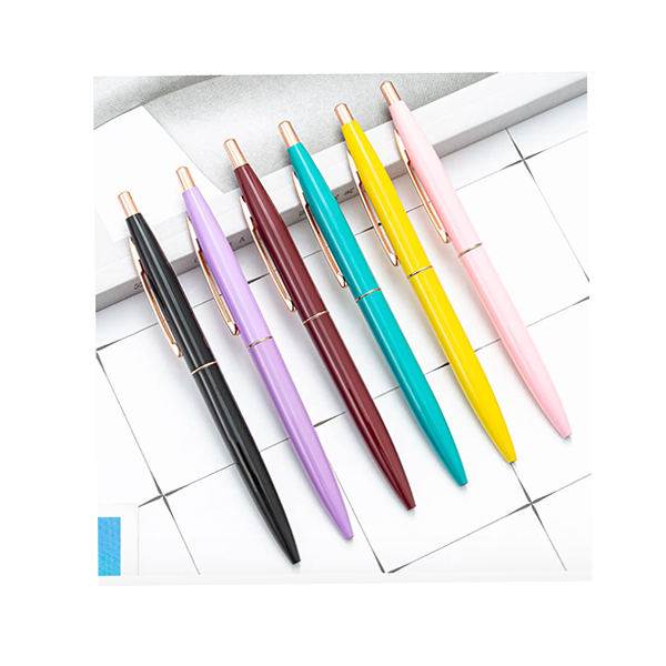 Rose Gold Click Ball Pens, Metal Retractable Pen, Black Ink Medium Point 1mm, Gifts and Office Supplies