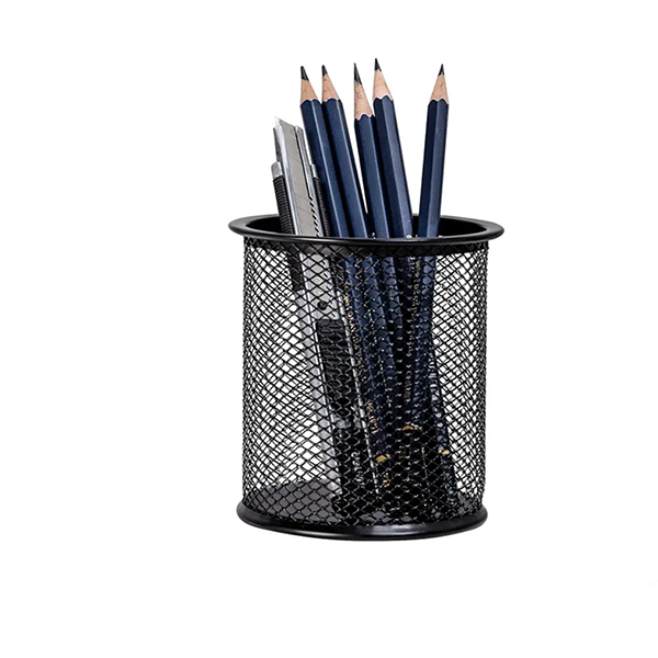 Round Shaped Black Mesh Pen Collection Organizer Metal Pencil Holder for Desk Office