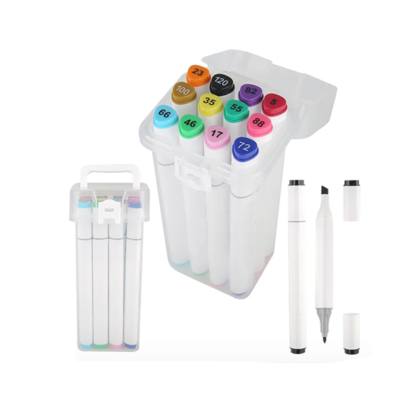 Set Of 12 Colors Art Sketch Drawing Double Ended 1mm Round 4mm Chisel Tip Brush Dry Erase Alcohol Marker Pen