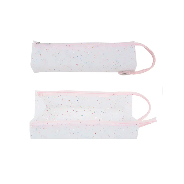 Silicone Pencil Cese Silicone With Glitter Inside,Pink Tape And Silver Zipper
