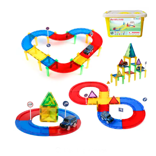 STEM DIY Magnetic Tiles 45 Pcs Magnetic Building Blocks Car Racing Track Toys for Kids