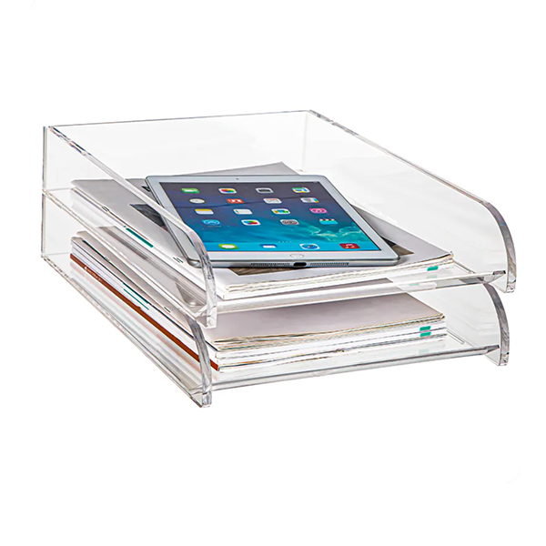 Thickened transparent acrylic double-layer file holder Stationery storage box Data storage box