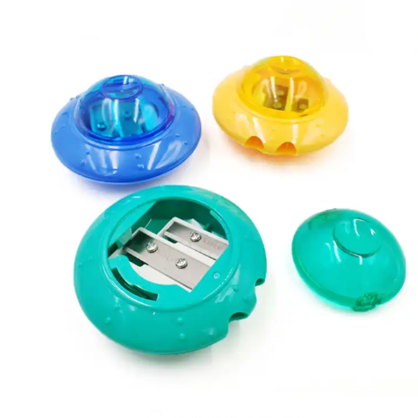 Top manufacturer wholesale two blade tajador de lapiz UFO shaped sacapuntas plastic sharpener pencil Korean Stationery School