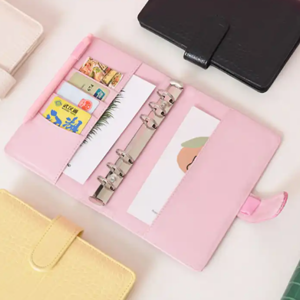 Wholesale Custom A5 A6 Binder Budget Planner Leather Card Cash Envelope Cover 6 Ring Loose LeafJournal Notebook