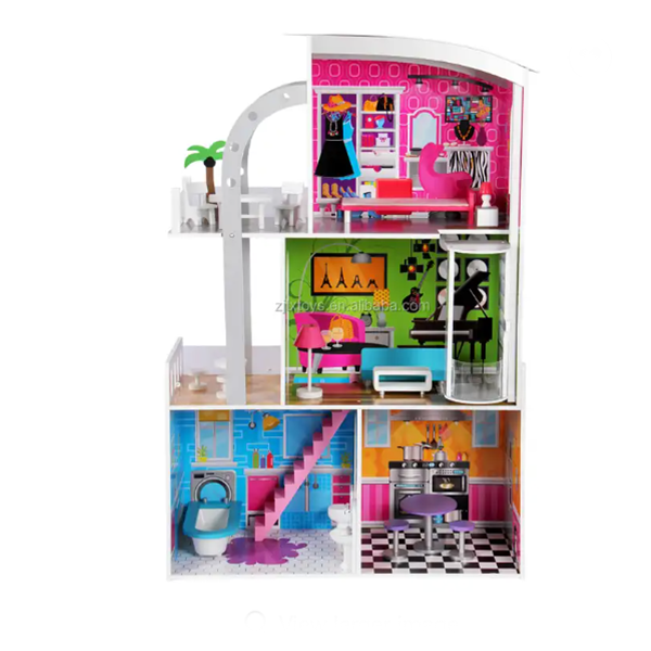 Wholesale Eco Friendly Diy Toy Furniture Set Doll House Multi-color Miniature wooden dollhouse