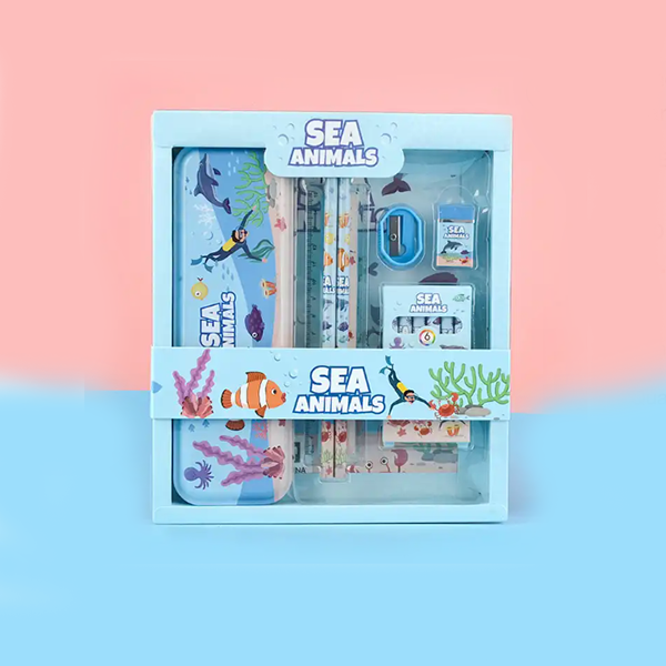 Wholesale Stationery Sets School Supplies Kawaii Fancy Kids Gift Cute Cartoon Pencil Ruler Rubber Stationery Items