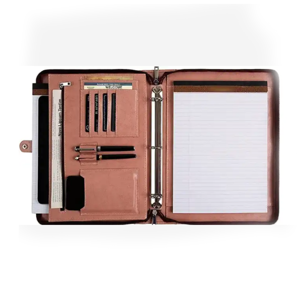 wholesale Zipper Holder pink pu Leather Documents Organizer Agenda/Portfolio 3 ring binder and Pockets File Folder