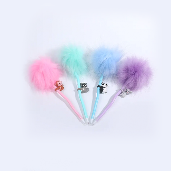 Wholesales Customization Logo Printed Pom Pom Topper Action Animal Shaped Decoration Novelty Ball Pen