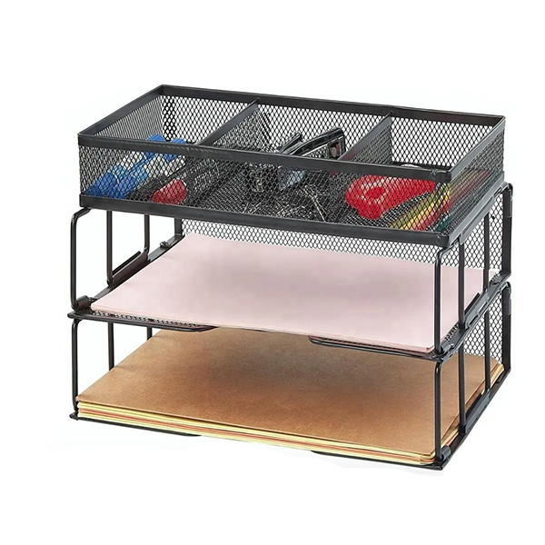 Wideny Office Metal Mesh 2 Tier Desk File Organizer Shelves With 3 Sorter Sections