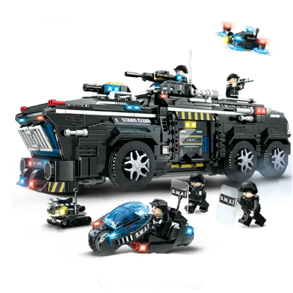 WOMA TOY Retail Sale Student Child Intellectual Educational Kid SWAT Carrier Loader Car Building Blocks Brick Set Juguetes