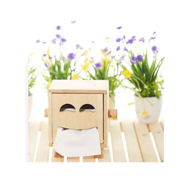 Wood Smile face Bathroom Facial Tissue Box Holder Cover/Napkin Dispenser