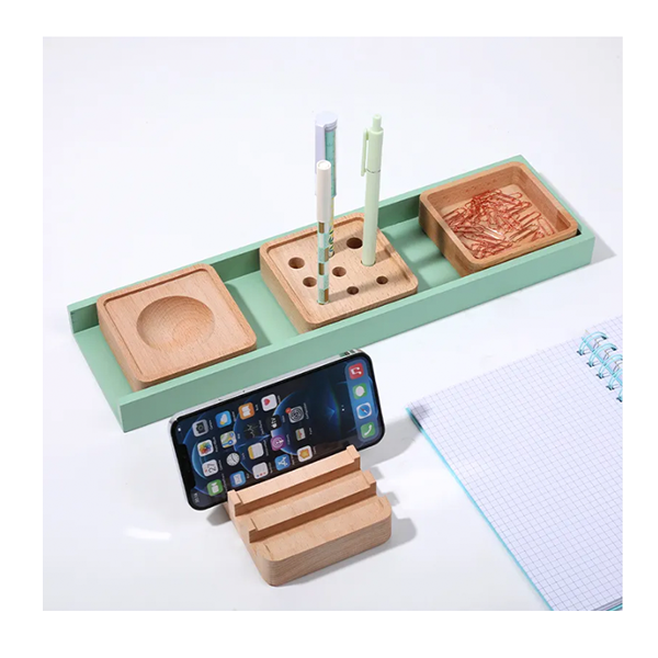 Wooden Box Set Recycled Organizing Office Supplies Eco Friendly Office Desk Organiser