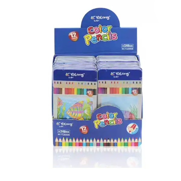 Yalong Best-sale Poplar Wooden 12 Colors Pencil Set Luxury Metal Packing Colored Pencils For Kids Art Drawing