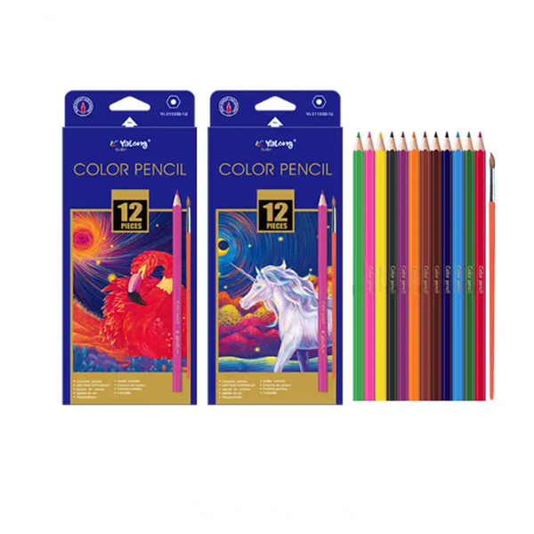 YALONG Best Selling 12 Color Professional Water Soluble Hexagon Wooden Colored Pencil Set For Artists Painters School Students