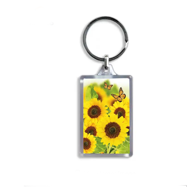 Zebulun PP Lenticular Sunflower Key Chain Ring Promotional Products Personalized 3D Plastic Acrylic Digital Photo Keychain