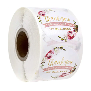 500pcs Roll Adhesive Thank You Label Stickers, 25mm 1” Inches Various Design Floral Kraft Paper Thank You Sticker Label