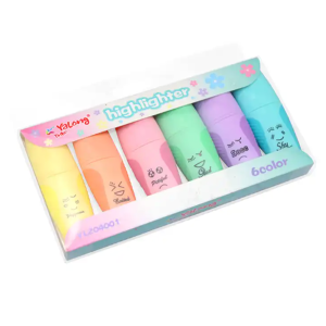 Yalong OEM support logo fluorescent pastel 6 color stationery set multi color highlighter pen for kids