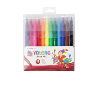 Yalong 12 Colours With Seal Sketch Art Marker Nylon Brush Tip Watercolor Brush Marker Pens Color Pens