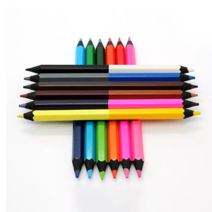 Factory Custom High Quality Black Wood Double Color Pencil Linden Wooden Double Headed Color Pencils In Bulk