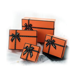 Wholesale orange cosmetics lipstick top and bottom paper gift box with bow ribbon