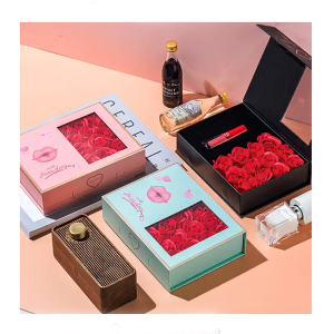 Custom Logo Magnet Ribbon Soap Flower Gift Boxes With Window For Jewelry Packaging