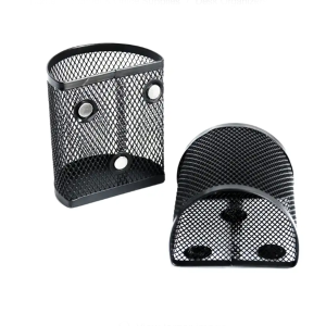 Office supplies multi-functional wire mesh storage metal baskets pen cup black magnetic pencil holder for organizer whiteboard