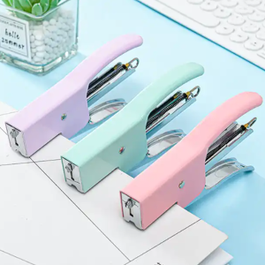 Hot Macaron Color Stationery Hand-held Metal Stapler Wholesale Factory Student Office No. 12 Gold Labor Saving Large Stapler