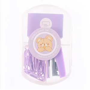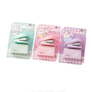 High Quality Macaron Color Mini Student Stationery Set Stapler Paper Clip Staples Wholesale
