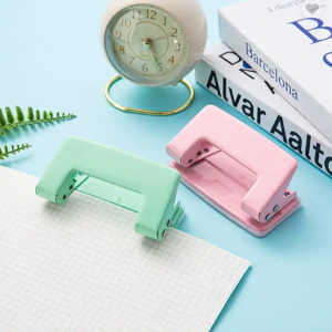 Macaron color small paper double hole puncher 6mm plastic round manual punch office stationery binder punch