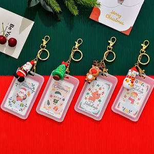 Manufacturers direct sales Christmas new double-sided transparent waterproof cartoon key chain campus card sleeve